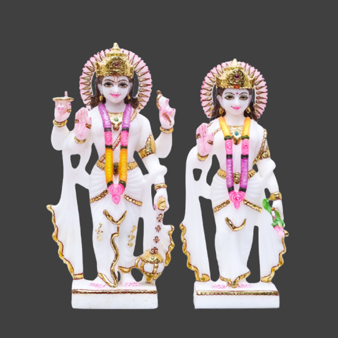 Placing a Vishnu Laxmi Jodi Murti in your puja room is believed to bring mental peace, wealth, and happiness to your home. According to Vastu Shastra, this divine idol should face west, allowing you to face east while praying. This beautifully crafted Vishnu Laxmi marble idol is ideal for creating a spiritually balanced and prosperous space. A perfect choice for your home temple or meditation area.