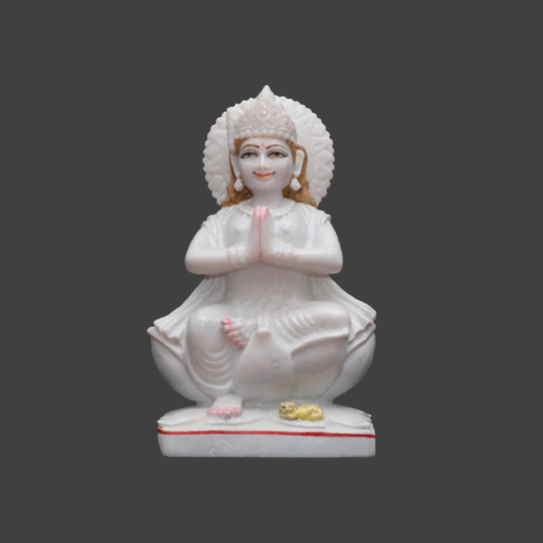 This elegant Marble Goddess Parvati Statue is depicted seated on a white lotus flower, symbolizing beauty, prosperity, and fertility. Expertly handcrafted by skilled artisans, this marble Parvati idol is a one-of-a-kind masterpiece that enhances the spiritual aura of your home temple, pooja mandir, or décor space.