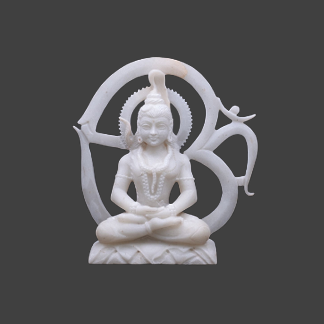 Experience the divine presence of Lord Shiv Ji with this exquisite marble Shiva statue in a seated pose, crafted from pure Makrana white marble. Perfect for home temples and pooja rooms, this Lord Shiva idol with Om background symbolizes spiritual wisdom and the path to moksha. Devotees believe that keeping this handcrafted marble Shiva statue brings peace, positivity, and divine blessings to your home. Ideal as a spiritual gift or centerpiece for prayer and meditation.